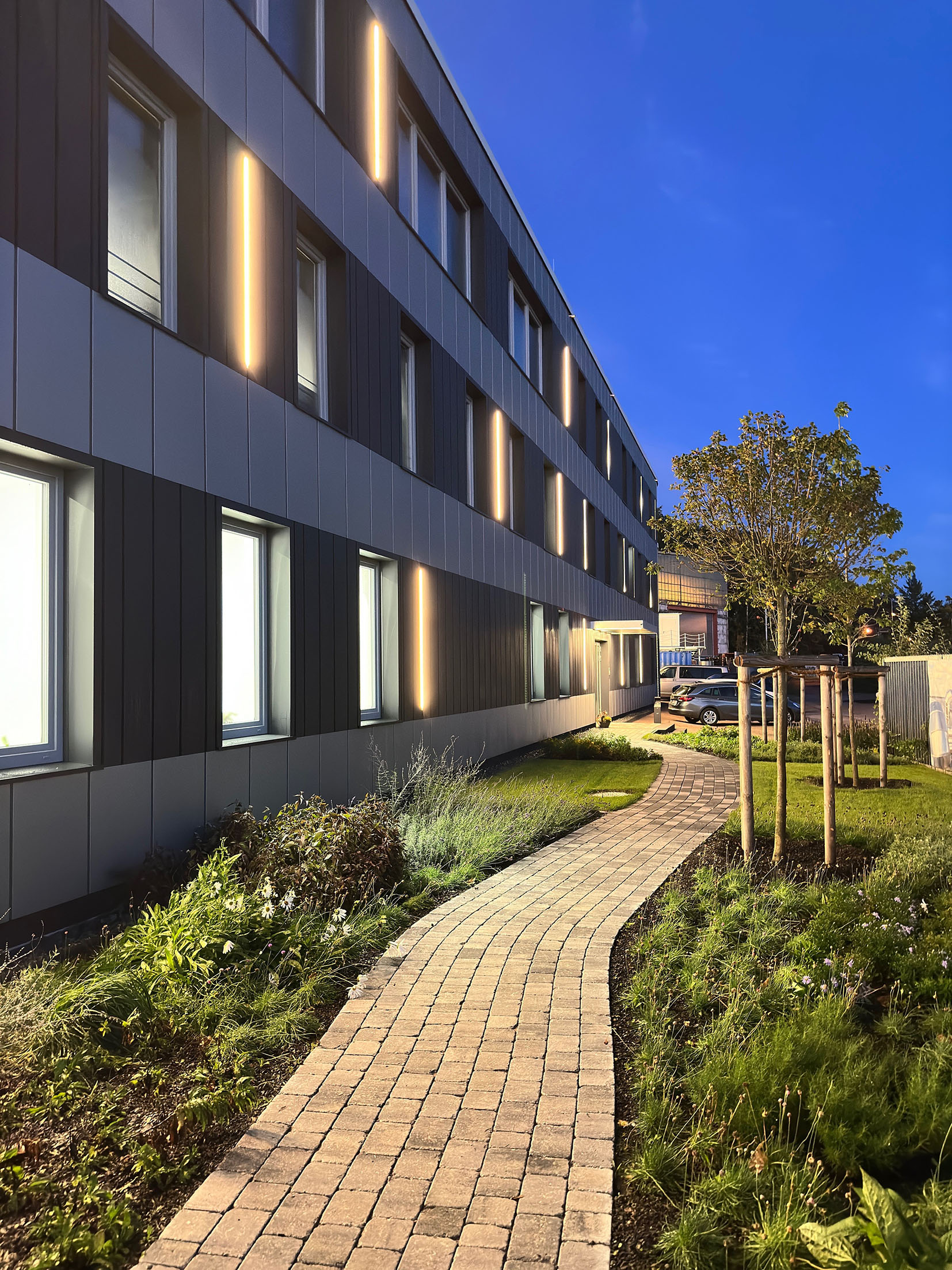 Für einen Erweiterungsbau der Dr. Diestel GmbH am Sitz in Rostock war ein Fassadenmaterial gefragt, das sich optisch an den Bestand mit Trapezprofilen an der Gebäudehülle angleicht. Findig wurde man schließlich bei einem langjährigen Geschäftspartner: Auf einer Nettofassadenfläche von rund 885 m² kamen Kassetten von Lindab zum Einsatz – jede davon nach Zeichnung auf Maß produziert.